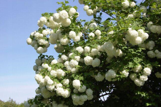 - Ordinari. És un arbust alt amb fulles llargues i verdes amb 3-5 lòbuls. Posseeix una elevada resistència a l’hivern, aporta belles inflorescències globulars blanques.