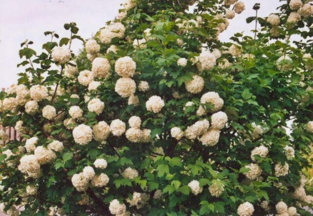Kalina Buldenezh (Viburnum Boulle-de-neig) és un arbust ornamental popular entre els jardiners del centre de Rússia i Sibèria. Difereix en un creixement ràpid, una floració espectacular i abundant, fa que les condicions siguin baixes. Sovint s'utilitza en el paisatgisme per crear composicions individuals i en grup. A la foto del viburnum decoratiu Buldenezh, es pot veure que els seus brots són rectes, coberts de fulles de color verd clar, que a la tardor adquireixen un bonic color vermell-rosa.