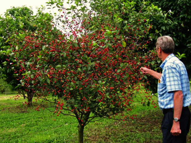 Les fruites adquireixen un color robí per 2-3 dècades de juliol. El millor és esperar unes 2-3 setmanes perquè es tornin marrons i més dolços. El rendiment màxim d’un bonsai és de fins a 10 kg.