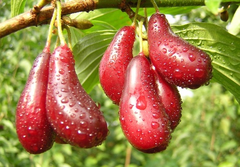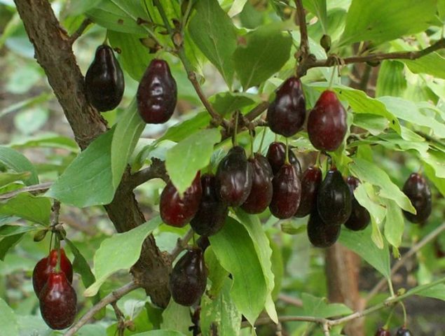 Els fruits del corni del jardí són molt grans i sucosos. Poden ser de diferents formes: