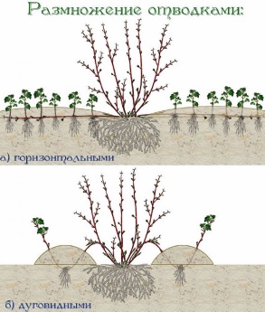 Amb un brot horitzontal, les plantes estan completament cobertes de terra. Amb un arc, el sòl només s’escampa al centre de la capa, deixant la part superior a l’exterior. El procediment es realitza a la primavera. A la tardor, els brots del deren arrelen i es poden separar de la planta mare i plantar-los en un lloc permanent.