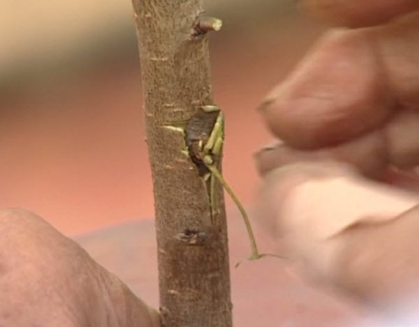 Apte per a la regió on creix el corni comú. S’utilitza si necessiteu cultivar ràpidament una varietat de jardí de mascle. Amb aquest mètode de reproducció, només s'obté un arbre, ja que tots els brots "salvatges" del mascle recent s'han de tallar anualment. En aquest cas, es forma una planta estàndard.