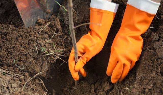 - En primer lloc, cavar un forat de la profunditat desitjada. La seva mida es selecciona individualment per al sistema radicular de la mata.