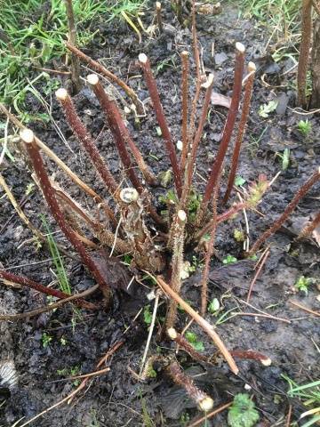 - Tallar sota l’arrel de tiges velles de dos anys.