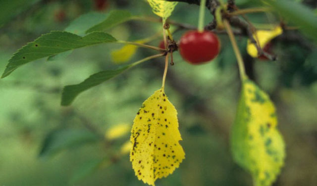 - coccomicosi - amb aquesta dolència, les fulles de l'arbre es cobreixen amb taques marrons, es tornen grogues i cauen, a causa de les quals s'interromp el cicle biològic i no es produeix la fructificació;