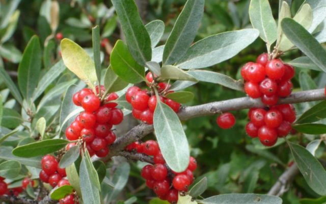 Distingir entre plantes masculines i femelles pel tipus de brots florals. Les mates femenines cobreixen petits brots punxeguts; en les espècies masculines són grans i arrodonides. La planta és molt decorativa en qualsevol època de primavera i estiu. L’arbust platejat està decorat amb flors grogues a la primavera i baies vermelles a l’estiu.