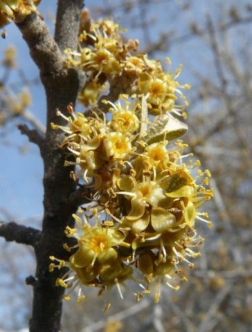 Els arbustos creixen fins a una alçada de 4 metres. Les branques són primes, tortes, sovint espinoses. Les fulles són oblongues, cobertes amb un pelut platejat. Les petites flors grogues apareixen abans que les fulles s’obrin a l’abril.