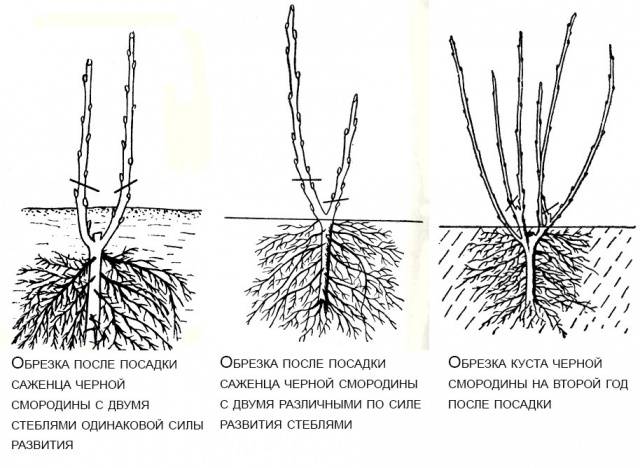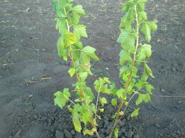 Fins i tot abans que les arrels estiguin cobertes de terra, s’aboca aigua al pou. Només després d’això comencen a compactar el sòl i a omplir el pou de plantació de terra. Per rejovenir la corona i dirigir les forces de la grosella cap a les arrels, els brots de la mata es tallen per un terç o la meitat.