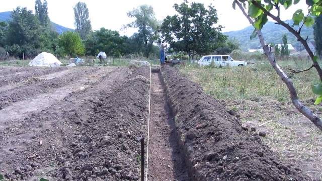 - En primer lloc, les trinxeres es preparen amb una profunditat de 0,4 mi una amplada de 0,5 m. Es deixa una distància de fins a 1,2 m entre elles.