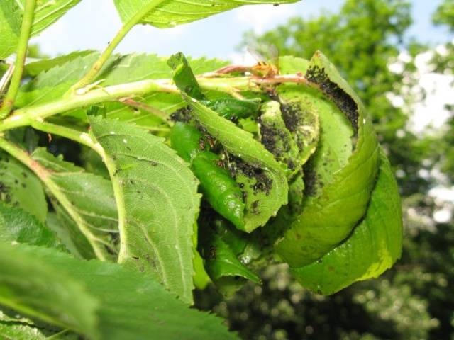 Àfid | Colònies sota les fulles retorçades | Processament a principis de primavera, després de la floració, a l’estiu: Inta-Vir, Aktellik, Fitoverm | Espolvorear a la primavera: Fufanon |