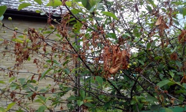 Moniliosi o cremada monilial | Brots, ovaris i fulles que semblen cremades | Polvorització amb agents que contenen coure a principis de primavera, després de la floració, a la tardor | S'eliminen les branques infectades, es cremen les fulles caigudes i les branques malaltes |
