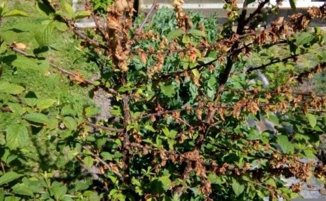 Moniliosi | Maridatge de flors, fulles, assecat de brots | 1. Prevenció - tractament fungicida. 2.Lluita: destrucció de les parts afectades de l’arbust, polvorització amb preparats que contenen coure |