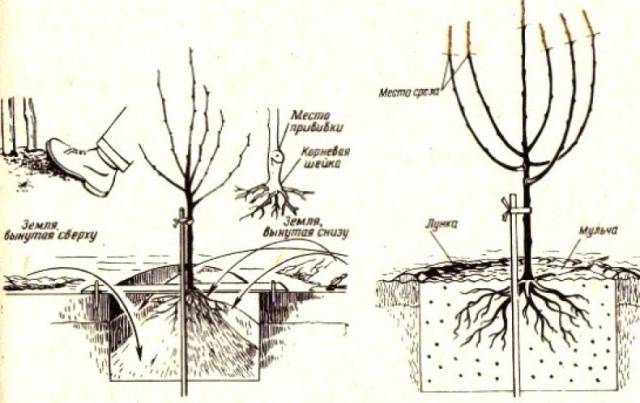 - després de la sembra, el sòl del cercle del tronc es compacta acuradament, es rega bé i es mulch amb torba.