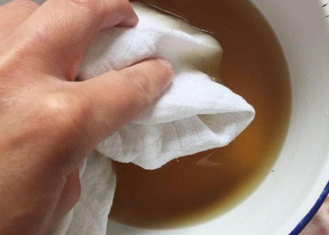 A la solució, cal humitejar un tros de gasa plegada i fixar-lo amb un embenat a l'articulació adolorida. Es recomana realitzar el procediment al vespre, poc abans d’anar a dormir, per deixar la compresa durant la nit.