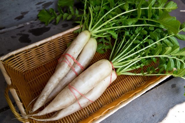 Les persones que es queixen d'algunes malalties haurien d'estudiar els beneficis i els perjudicis del daikon abans de menjar. Per a un cos sa, aquest vegetal ric en vitamines i fibra aportarà indubtables beneficis. Té un bon sabor i manca l’amargor dels olis de mostassa que és inherent als raves o als raves normals. Vegetal d’arrel blanca cilíndrica, d’esquema similar a les pastanagues, però molt més gran en volum, per les seves propietats beneficioses, també s’utilitza en tractaments externs i cosmetologia.