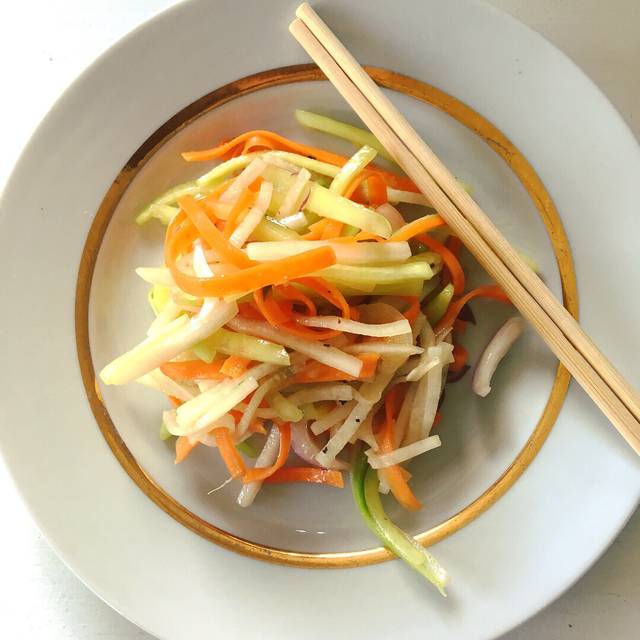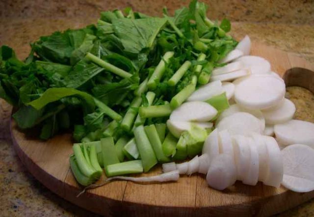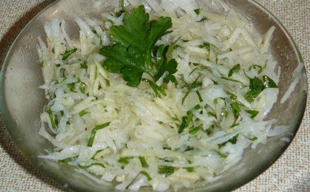 Els compostos vegetals netegen els conductes biliars, ajuden un cos sa a digerir els aliments grassos, de manera que cal incloure una amanida feta a la llista de plats de vacances. Donarà beneficis a Daikon per al fetge en un plat d’aquest tipus: