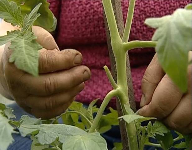Amb el mateix propòsit, es realitza una altra tècnica agrícola, que forma part del procés de formació de les plantes: trencar les fulles d’un tomàquet. Comença només quan la mà inferior està completament formada i els fruits comencen a cantar.