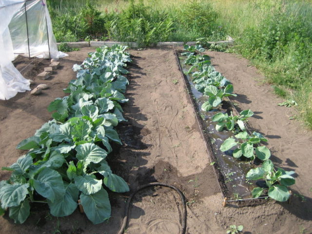 Les llavors es sembren a una distància de 2 cm i es reguen a fons.Queden 4 cm entre els solcs Els contenidors amb llavors de col es cobreixen amb film negre o es col·loquen en un lloc fosc. La temperatura del contingut de futures plàntules hauria de ser d’uns 25 ° C.