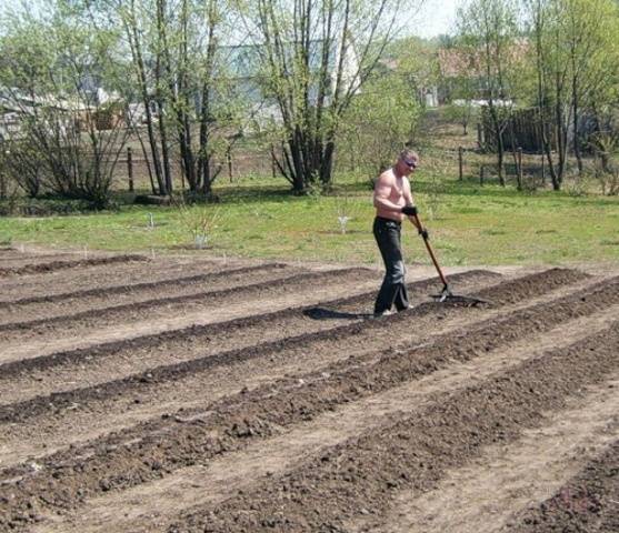 El sòl excavat junt amb fertilitzants es deixa fins a la primavera. A la primavera, un parell de setmanes abans de plantar-se, la terra es torna a desenterrar i es deixa compacta.