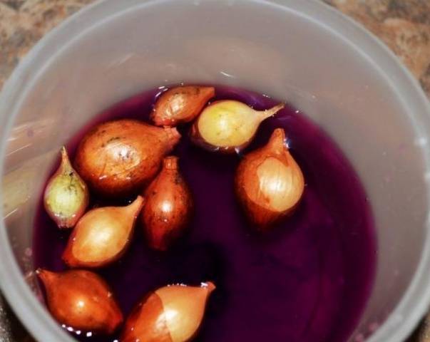 En qualsevol de les solucions enumerades, les bombetes es remullen no més de mitja hora. I després de processar-les amb permanganat de potassi i vitriol, cal esbandir les cebes amb aigua corrent per no cremar els brots.