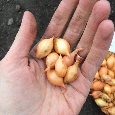 Abans de sembrar, les cebes Golden Semko es calibren dividint-les en tres fraccions.
