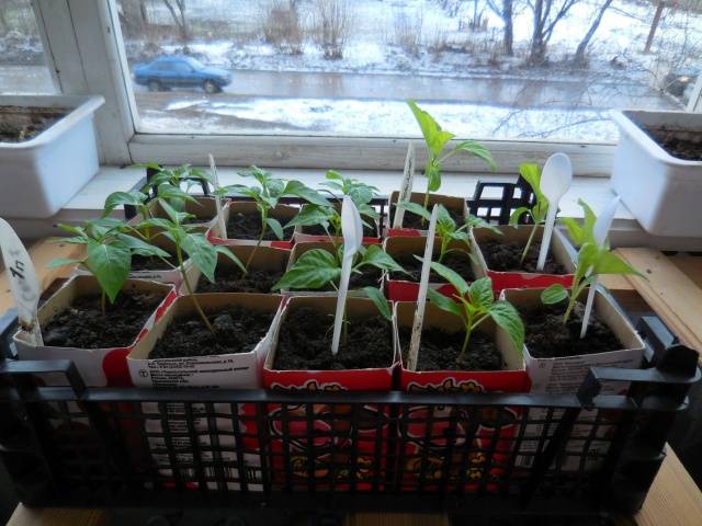 Durant els propers 7-8 dies, les plàntules joves de pebre Lyubov F1 es mantenen en un lloc fresc, on la temperatura no supera els 18 graus. Els brots en aquestes condicions seran més forts, però necessiten una il·luminació addicional, fins a 14 hores de llum intensa diària.