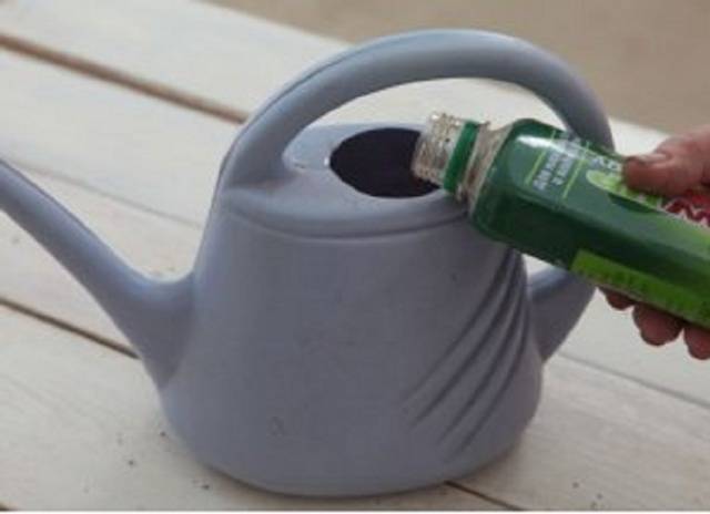 - També podeu dissoldre 2 culleradetes de nitrat d’amoni, 3 cullerades de sulfat de potassi i 3 cullerades de superfosfat en una galleda d’aigua.