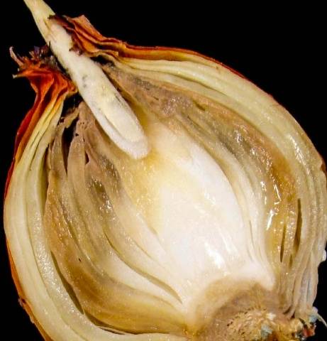 La malaltia de la ceba més freqüent és la podridura que afecta el fons de la planta. Es nota més sovint quan la verdura està madura. Com a resultat, la bombeta es suavitza i es podreix, l’emmagatzematge a llarg termini d’un vegetal malalt és impossible.Quan ja es detecta la podridura, la bombeta no es pot desar. Per tant, s’ha de prevenir la malaltia proporcionant una cura adequada a la ceba Exibishen. És inacceptable que l’aigua s’estanci als llits. Abans de plantar plàntules, heu de drenar el sòl. Per a això, s’elimina la seva capa superior i es fa un drenatge de sorra, grava i gespa de 3 cm, s’escampa un drenatge amb una petita capa de terra i després es planta la verdura.