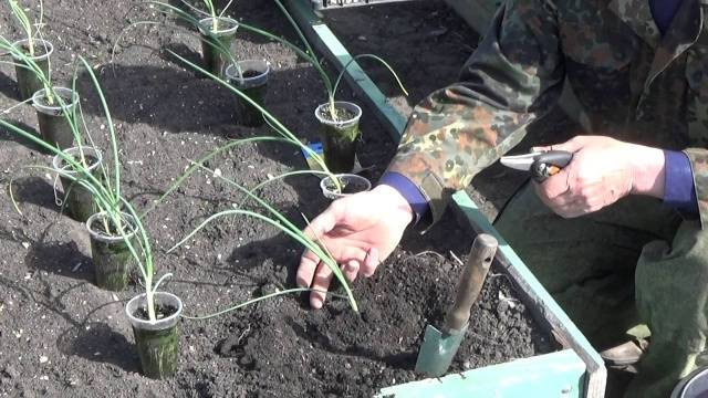 Després de 2 mesos, aproximadament 2 setmanes abans de plantar-se en terra oberta, les cebes joves s’endureixen traient-les al balcó o a l’exterior. Durant aquest període, el nitrat de potassa s’introdueix al sòl a raó d’1 g per 1 litre d’aigua. Si les cebes verdes comencen a allotjar-se, retalleu-les deixant 10 cm sobre el terra, amb la part tallada es poden fer amanides de primavera.