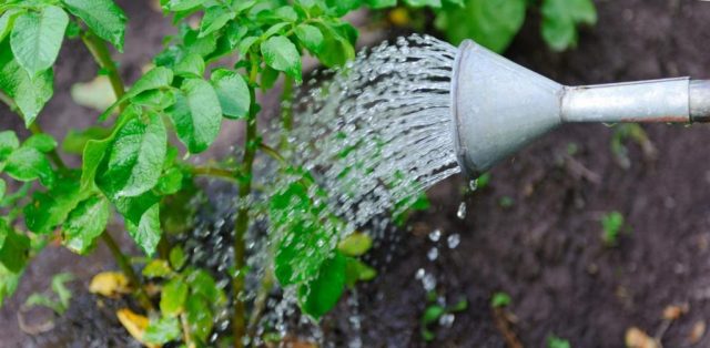 La primera humectació del sòl es realitza 7-10 dies després de la sembra, abans de la germinació, mitjançant el mètode de reg lleuger (mitjançant aspersors o regadores). Si el temps és sec, no hi ha pluja, després que apareguin els primers brots, les patates es tornen a regar.