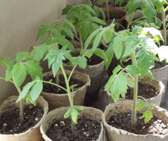 Per a les plàntules de tomàquet, s’escullen caixes o recipients amb una alçada de 12 a 15 cm i s’han de proporcionar forats de drenatge. Després de la collita, les plantes es planten en contenidors separats amb un volum de 2 litres. És convenient utilitzar tasses de torba per als tomàquets.