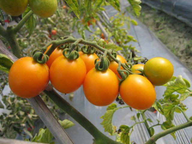 3 setmanes abans de plantar-se a terra, els tomàquets ambres s’endureixen a l’aire lliure. En primer lloc, obren la finestra i ventilen l'habitació. Després, els contenidors es traslladen al balcó. Això ajudarà a les plàntules a adaptar-se ràpidament a les noves condicions.