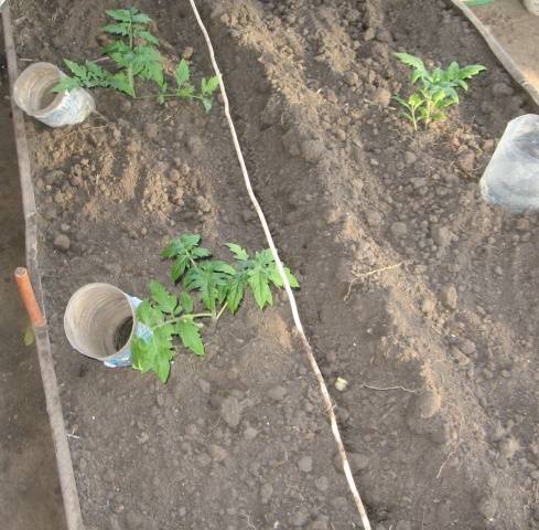 Quan els tomàquets es transfereixen a terra oberta, la tija queda enterrada 2 cm, cosa que contribueix a la formació de noves arrels a la planta. Si la probabilitat de gelades primaverals es manté, les plantacions es cobriran amb una pel·lícula o material especial.