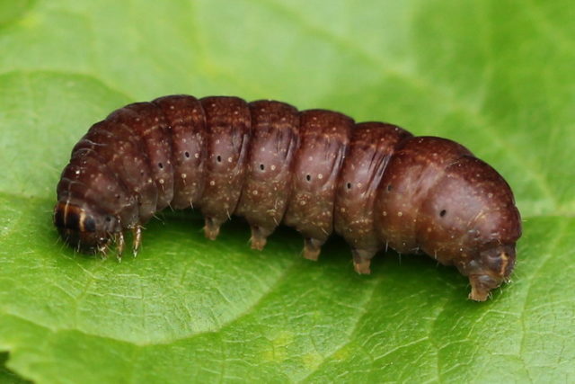 Les erugues de papallones, que s’alimenten de sucs d’hosta, no són menys perilloses per a la planta ornamental. És fàcil reconèixer les erugues; com a resultat de la seva activitat vital, apareixen forats a través de les fulles, solcs desiguals a les vores. Els brots i les flors d’Hosta pateixen durant el període de floració.