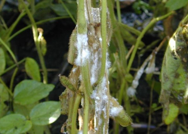 La malaltia per fongs comença a estendre’s des del coll de l’arrel de l’arbust. Al mateix temps, a la superfície de la tija a la part inferior es formen fils blanquinosos semblants al cotó. Les fulles de l’hosta es cobreixen amb taques marrons i comencen a morir, i escleròtia negra apareix gradualment al lloc de la placa.