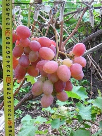 Els raïms es fan grans, amb un pes mitjà de 900 g. Sota la càrrega normal de l’arbust, la massa dels raspalls pot arribar als 1,2 kg. La forma de les baies és rodona, lleugerament allargada. El pes mitjà d’una fruita és de 30 g. La pell de la baia és prima, pràcticament imperceptible en mastegar.