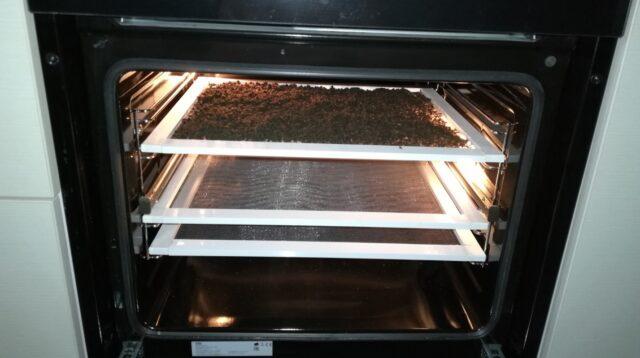 - Apagueu el forn i deixeu que l’herba es refredi completament. Per fer-ho, gireu periòdicament els brots.