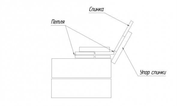 Si feu una caixa de sorra de fusta amb tapa, és millor prestar atenció al model plegable. Una foto d’un diagrama d’aquest disseny mostra clarament com un escut normal es converteix en un còmode banc.