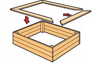 Podeu fer servir una peça de pel·lícula com a tapa, però haurà de prémer-la constantment amb maons o trossos de fusta a la nit. Per no participar en aquest procediment cada dia, és millor prendre un altre mig dia de temps i fer una tapa normal per a la caixa de sorra de fusta.