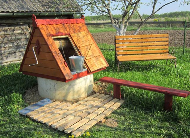 - Facilitat d'ús. Beure aigua és una necessitat constant, de manera que una casa de pou hauria de ser còmoda. Cal proporcionar un lloc per a una galleda, un dosser de possibles pluges.