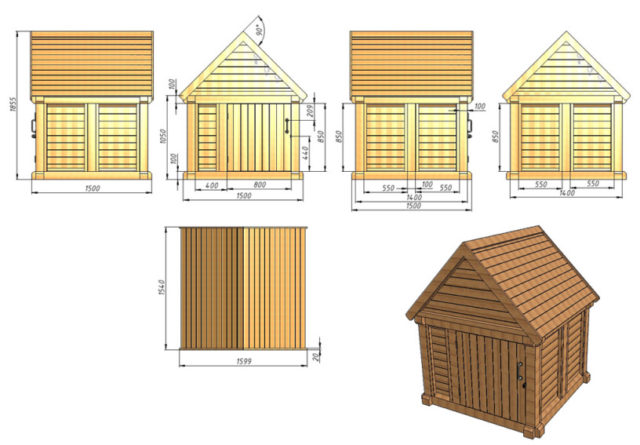 Una caseta de troncs arrodonits es fa de manera rústica clàssica. Per fer una casa per a un pou amb les vostres pròpies mans, haureu d’utilitzar un dibuix senzill que indiqui les dimensions del material i els punts de fixació dels bastidors.