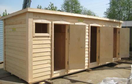 La casa de camp és un edifici combinat, format per diverses habitacions, amb un propòsit diferent. Normalment, un bloc d’utilitat per a una residència d’estiu combina una dutxa i un lavabo. El tercer compartiment pot ser una habitació destinada a un cobert o traster. Si us acosteu a la construcció d’una caseta d’estiu a gran escala, dins podeu equipar un garatge i fins i tot un lloc per descansar. Les dimensions de l’edifici es seleccionen individualment. Tot depèn dels desitjos del propietari, del nombre d'habitacions separades, així com de la disponibilitat d'espai lliure a la casa d'estiu.