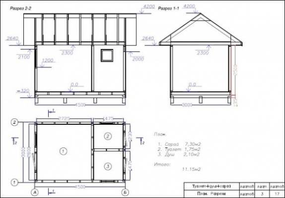 Així doncs, el projecte està a punt, procedim a la construcció d’un bloc d’utilitat amb dutxa, cobert i lavabo al país... L'edifici es pot erigir a partir de qualsevol material de construcció. Sempre intenten que els edificis de dacha siguin més econòmics i fàcils, de manera que ens centrarem en una estructura de fusta. Un fonament columnar és el més adequat per a aquest edifici i farem el sostre a partir de tauler ondulat.