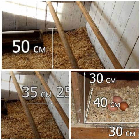 Instal·lar perxos en una gallineria requereix una determinació adequada de la longitud. S'assignen uns 30 cm d'espai lliure als pals per a cada pollastre. A més, la longitud de les perxes està determinada pel nombre d’ocells. Els pals es fixen a 50 cm com a mínim del terra. Quan es col·loca la perxa per a gallines horitzontalment, el primer pal s’elimina de la paret 25 cm, la resta es fixa amb un pas de 35 cm.