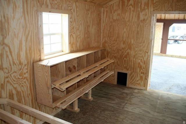 Durant la instal·lació dels nius, intenten triar un lloc fosc i apartat sense corrents d’aire dins del galliner. Perquè el pollastre tingui confiança i estigui tranquil, l'estructura ha de ser estable. És important que els nius siguin amplis. Per fer-ho, es fan 40 cm de profunditat. L’amplada i l’alçada del niu són com a mínim de 30 cm. A l’interior s’ha d’abocar un llit de palla o serradures. Podeu utilitzar fenc.