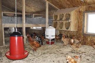 Dins de l’aviram equipat, també és important proporcionar adequadament menjadors i bevedors. Intenta parar atenció als hàbits de les gallines a l’estiu. Els ocells caven terra constantment a la recerca d’aliments. Així que és millor escampar el gra al terra. Les gallines picoren menjar fins i tot per sota de la brossa.