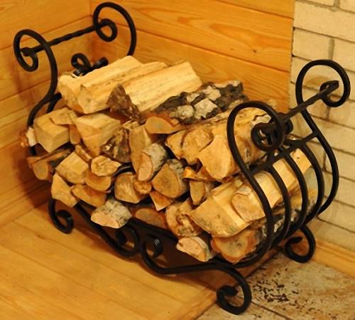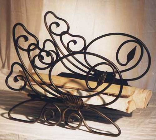Si realment us agraden les piles de fusta metàl·liques, és millor prestar atenció als models forjats. Per fer-ho vosaltres mateixos, s’hauran d’ordenar tots els elements a la forja. A casa, només queda soldar-los i pintar l’estructura acabada. Una llar de foc de ferro forjat costarà molt al propietari, però queda molt bonic.
