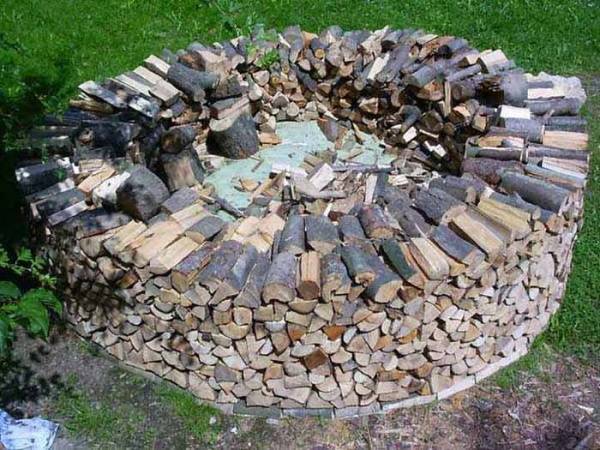 Es necessiten piles per emmagatzemar llenya seca. Podeu fer servir un graner normal o fer un buit a l’aire lliure. Al carrer, la llenya picada s’apila en una pila, coberta des de dalt amb qualsevol material que no permeti el pas de l’aigua.