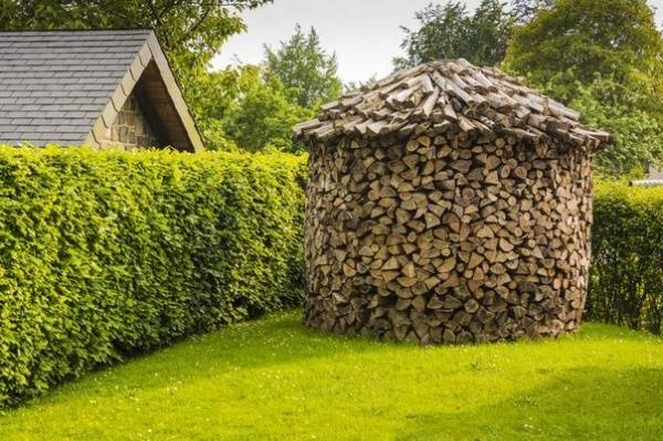Fer una pila rodona és molt més difícil que apilar troncs en una pila normal. No obstant això, els hostes vindran al propietari del país, que ha construït un magatzem rodó de llenya a partir de troncs, i l’edifici cridarà la màxima atenció.
