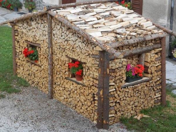 Com podeu veure, la pila de fusta al país no és només un magatzem de llenya. És tota una tradició decorar amb habilitat el vostre lloc i locals.